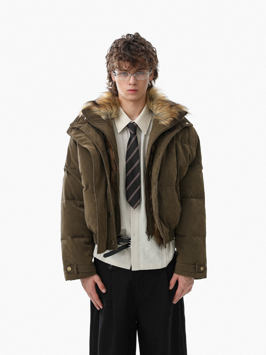Retro Süet Asimetrik Tokalı Şişme Mont | Kaz Tüyü Dolgulu