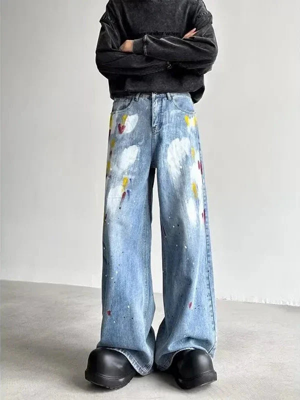 Yüksek Sokak Stili Nakış Detaylı Hip-Hop Jean