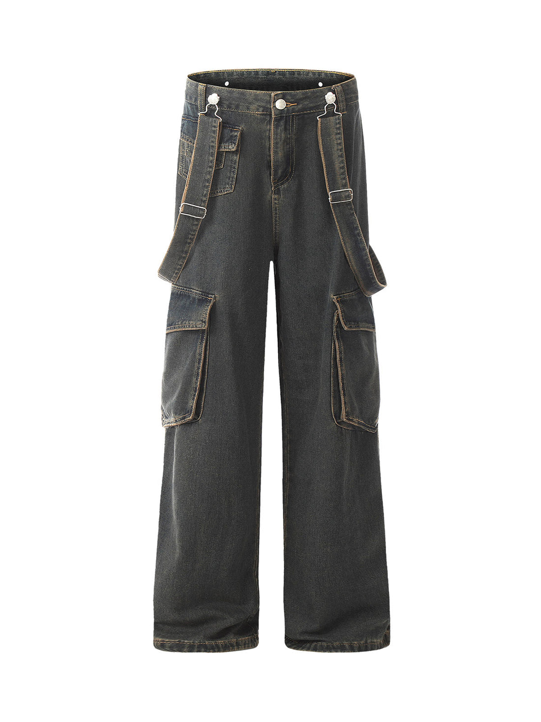 Retro Çıkarılabilir Askılı Çok Cepli Jean