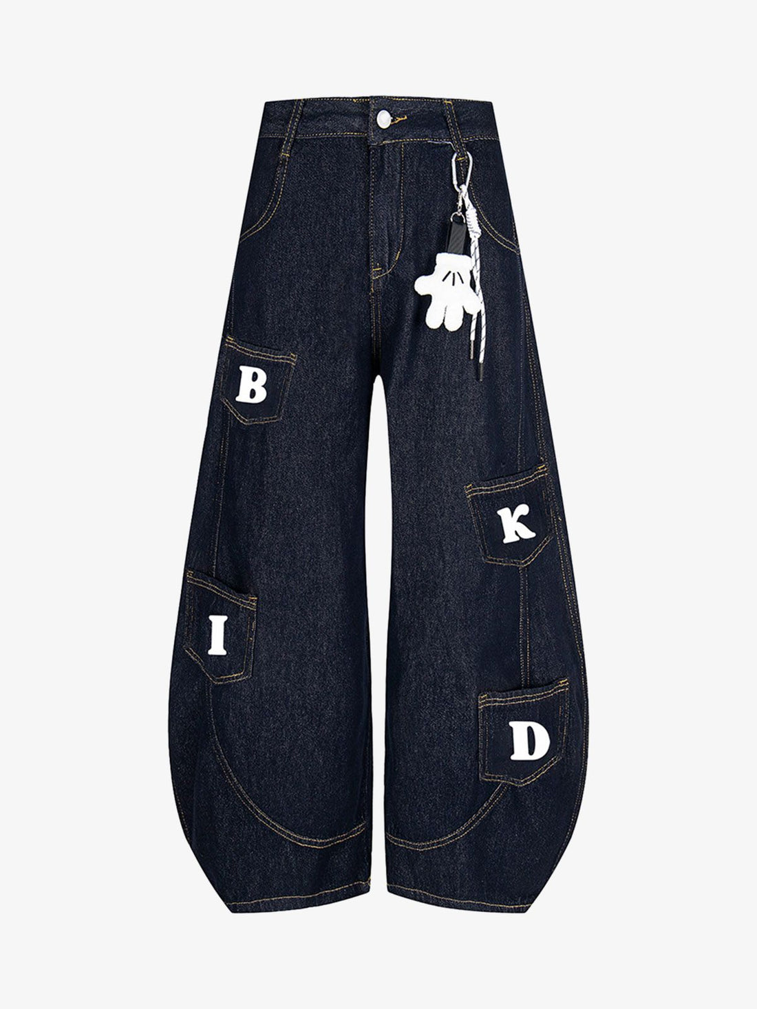 Eğlenceli Yazı Detaylı Cepli Barrel Jean