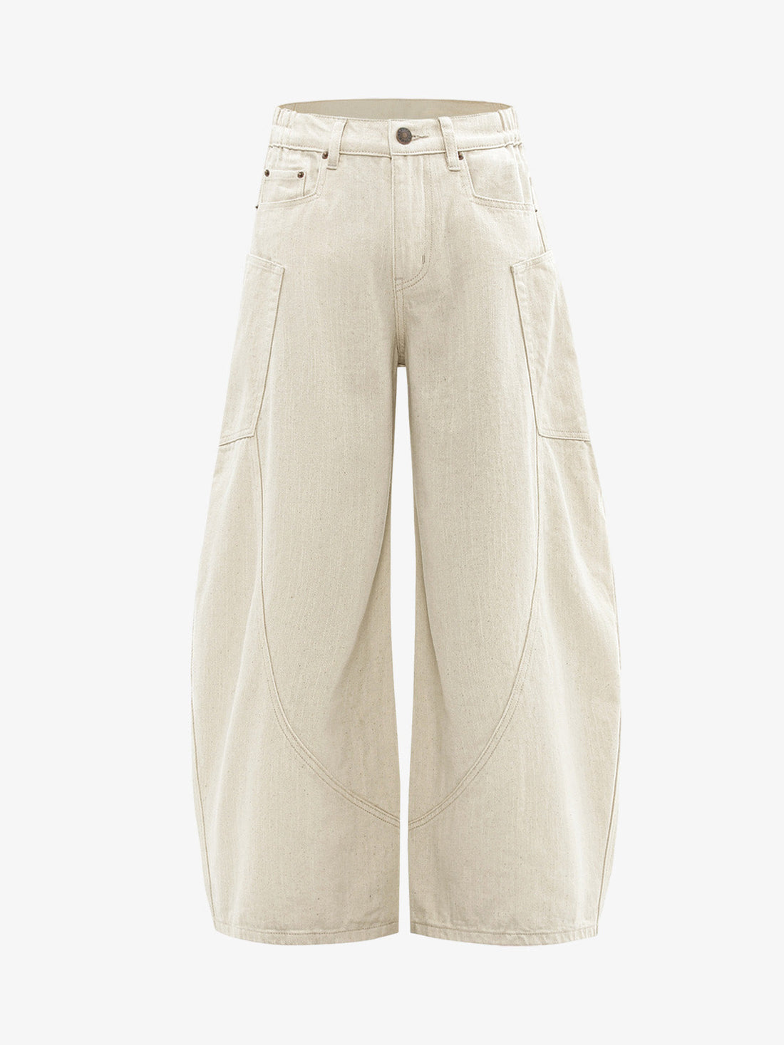 Raw Edge Tasarımlı Yıpratmalı Barrel Jean