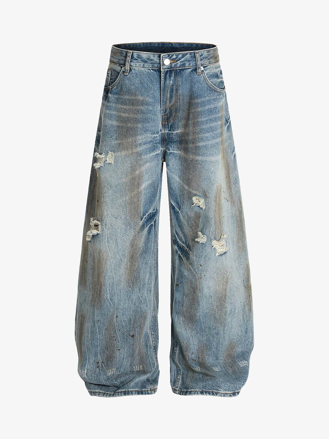 High Street Fonksiyonel Tasarım Tie-Dye Bol Jean