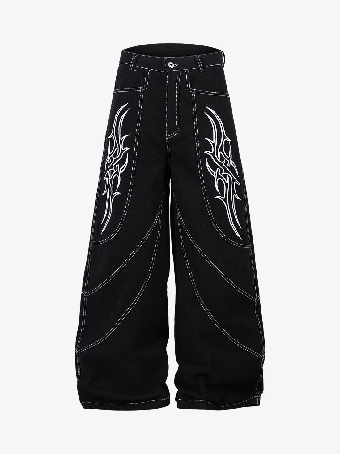 Özel Tasarım Nakış Detaylı Kontrast Bol Jean