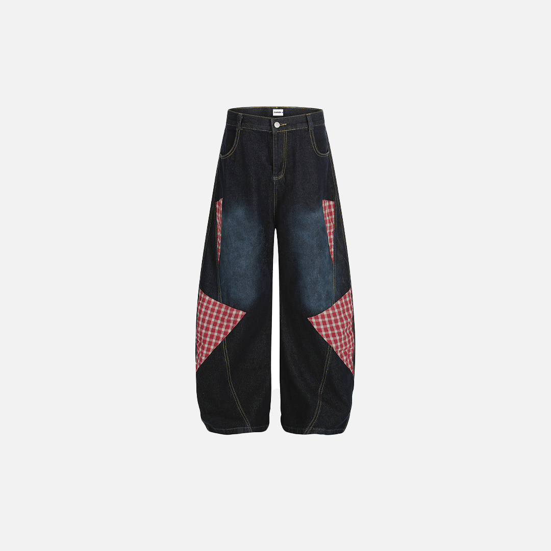 Vibrant Plaid Patchwork Punk Wide Leg Jeans
