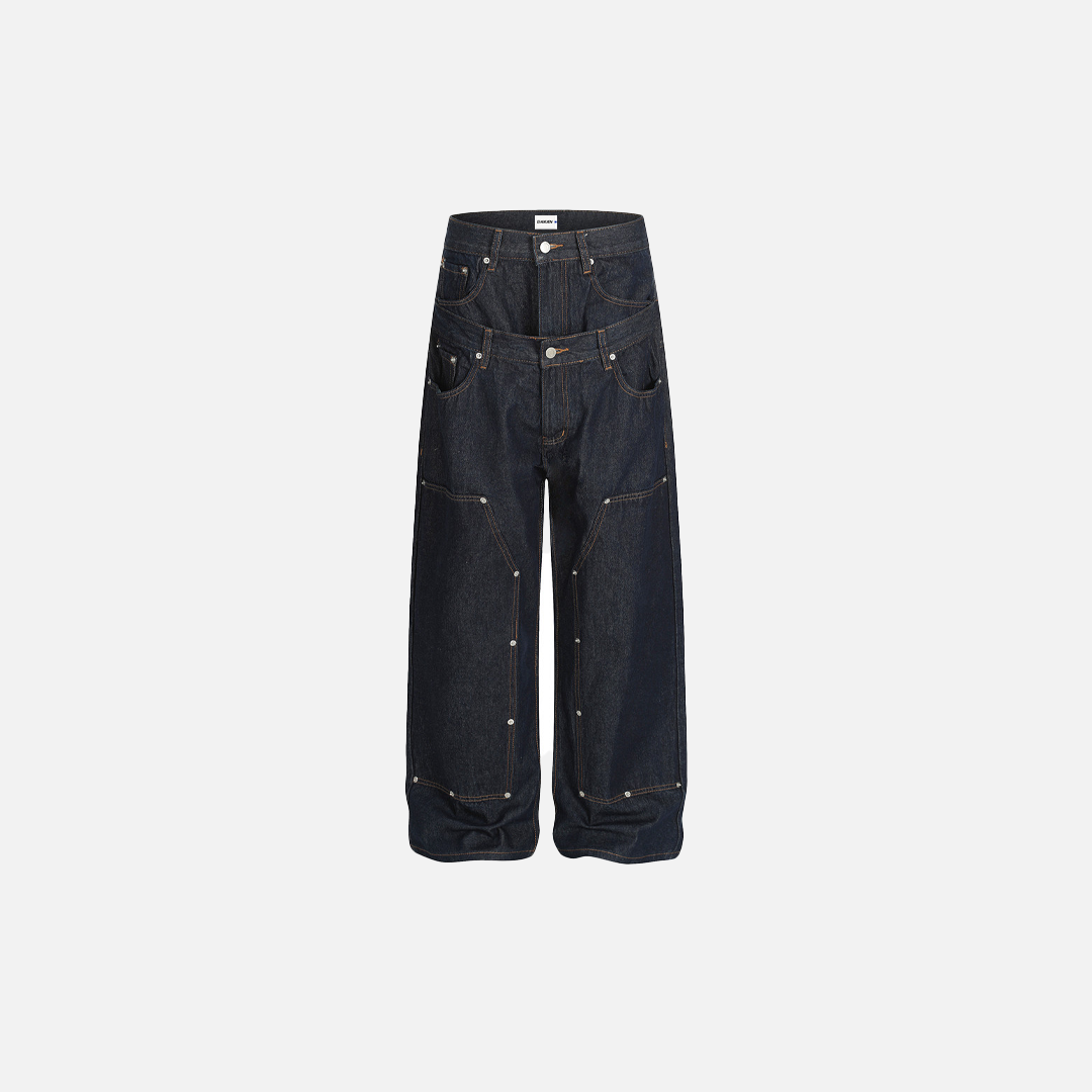 UrbanLaws Trendy Spliced Bel Detaylı Düz Bol Paça Jean