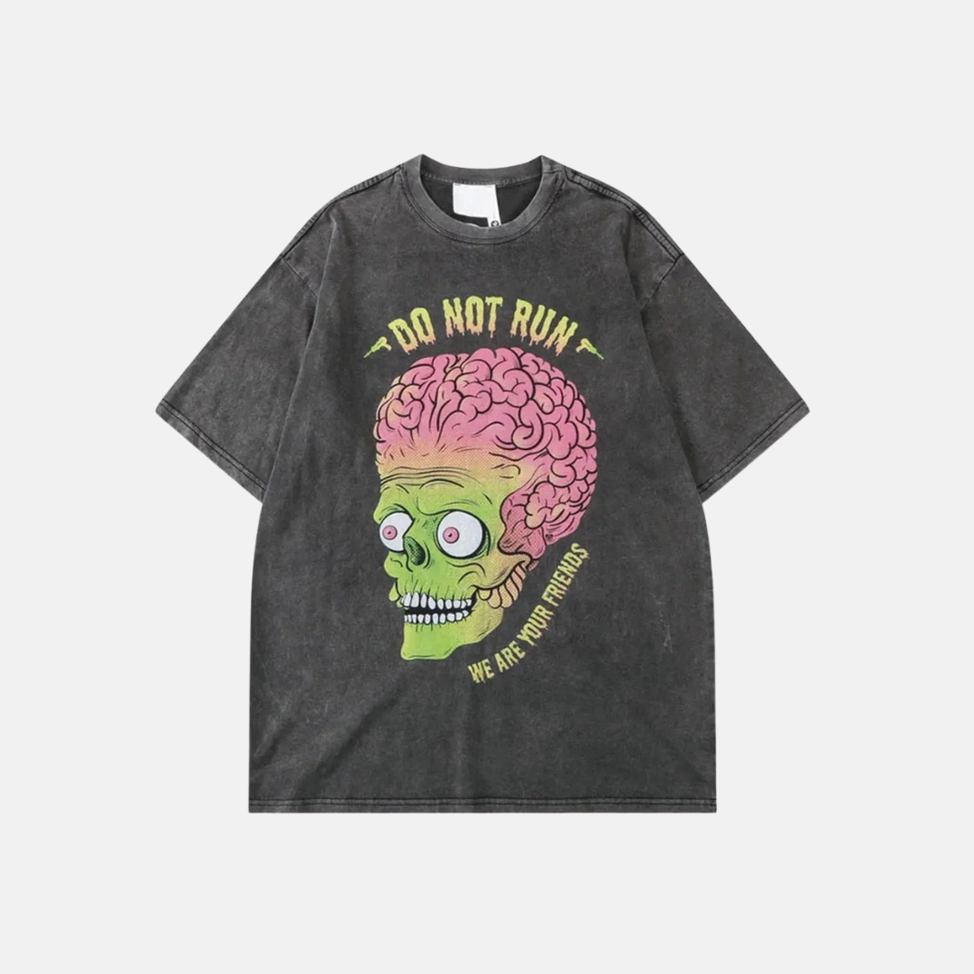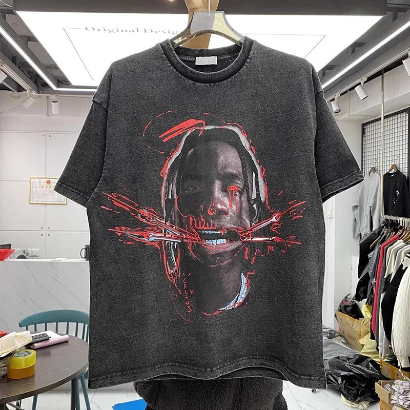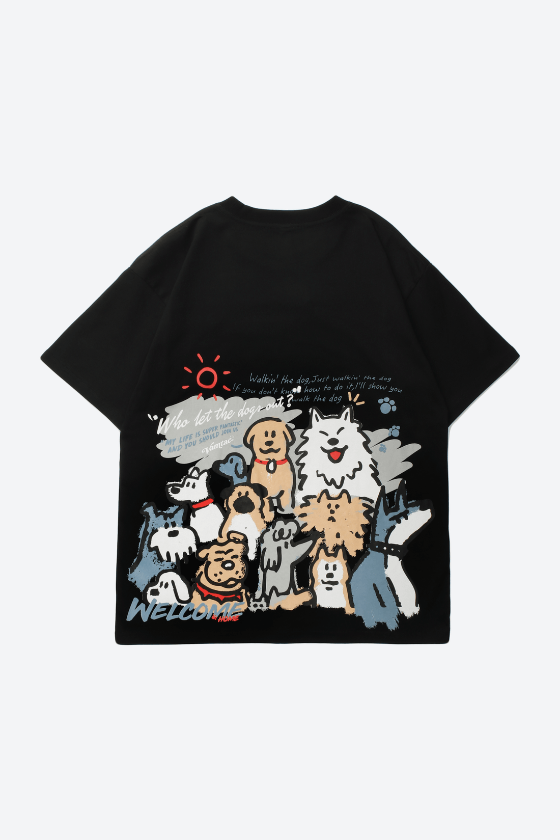 UrbanLaws Oversize Retro Cat Print Long Sleeve Streetwear Tee