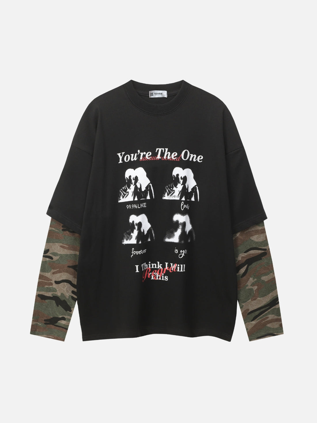 İkili Katmanlı Kamuflaj Baskılı Uzun Kollu Tişört