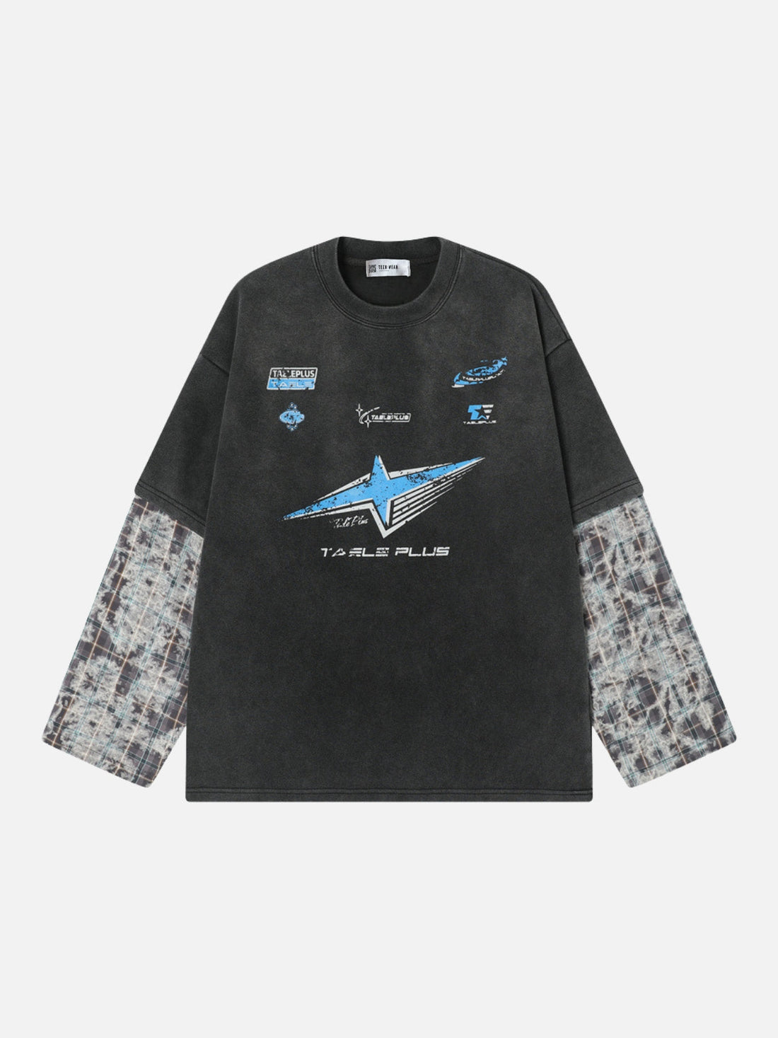 Özel Tasarım Degrade Yazı Baskılı İkili Katmanlı Uzun Kollu Tişört