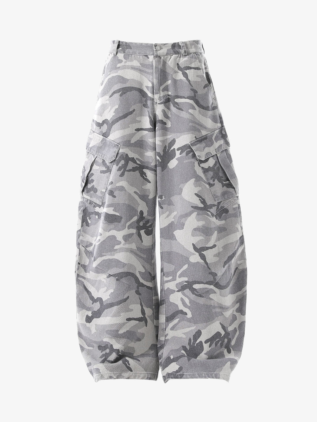 Dokuma Kar Kamuflajlı Geniş Paça Kargo Barrel Pantolon