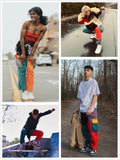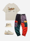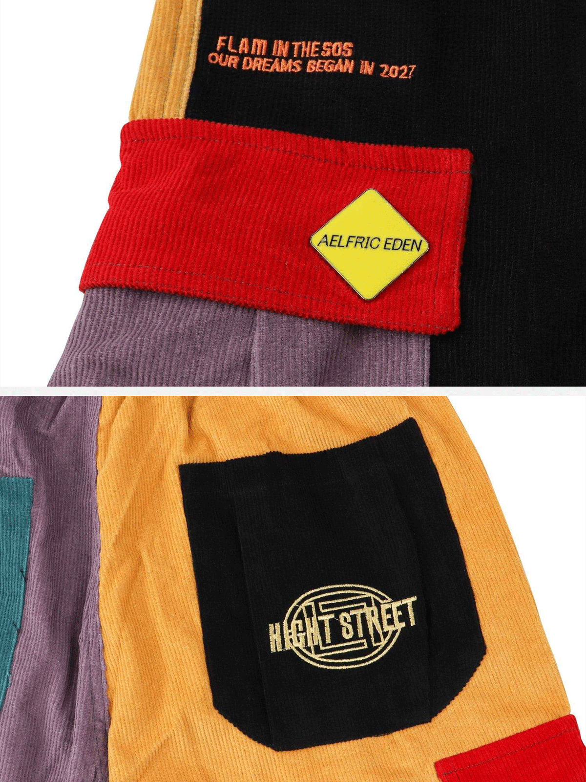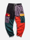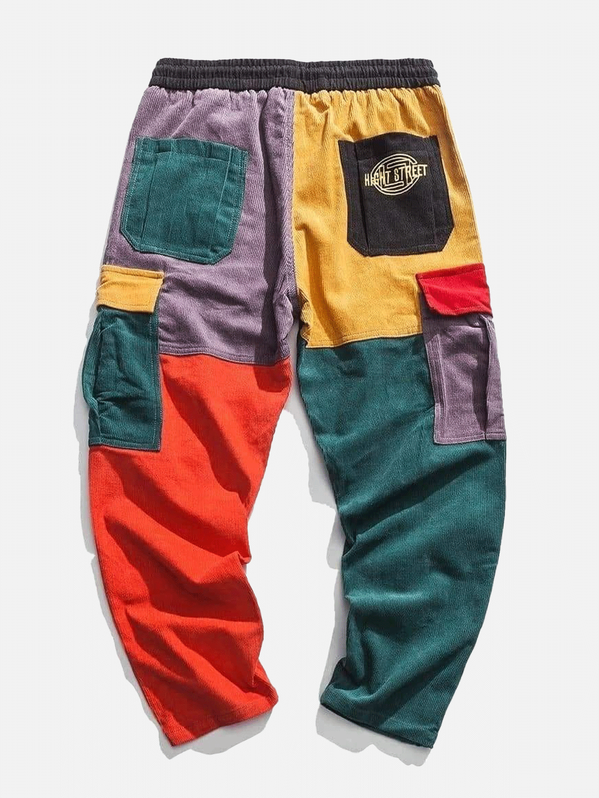 "90'lara Dönüş" Patchwork Renk Bloklu Fitilli Kadife Pantolon