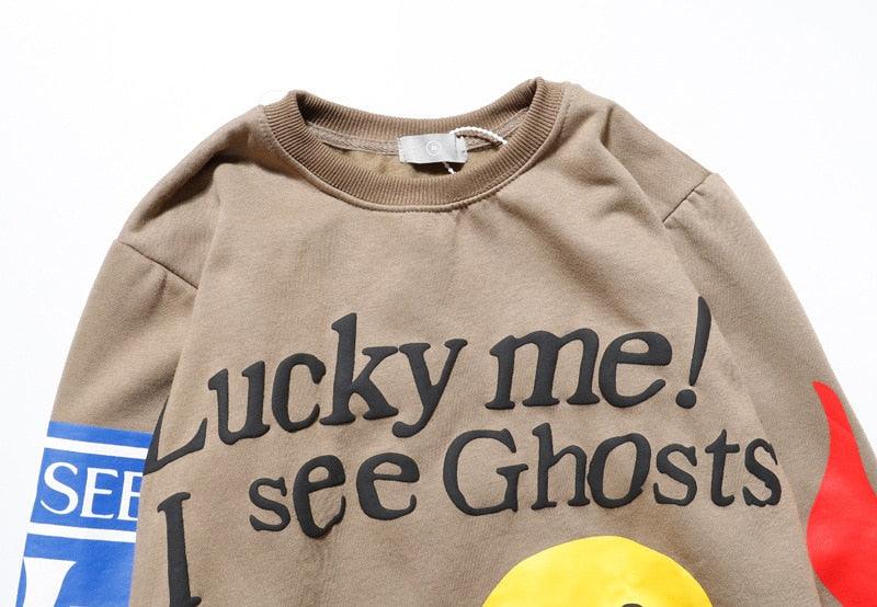 Şanslı Ben Görüyorum Hayaletler Tişörtlerimizle doğaüstünü kucaklayın. İlginç bir tasarıma sahip bu sweatshirtler, sokak giyim tarzınıza mistik bir dokunuş katıyor. Gardırobuna biraz sihir katmayı sevenler için mükemmel olan bu benzersiz ve modaya uygun parçayla tarzınızı yükseltin.