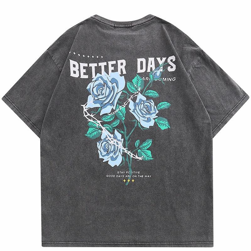 Better Days İki Taraflı Baskılı Unisex Tişörtümüz (BÜYÜK BOY) ile sokak giyimi oyununuzu yükseltin. İki yönlü baskıya sahip dinamik bir tasarımla tasarlanan bu tişört, Y2K havasının ve genç giyim trendlerinin özünü yakalıyor.