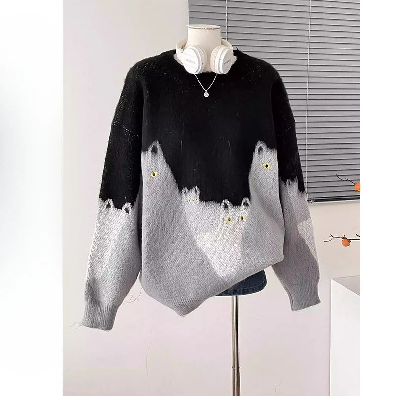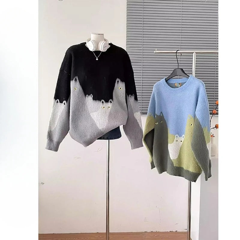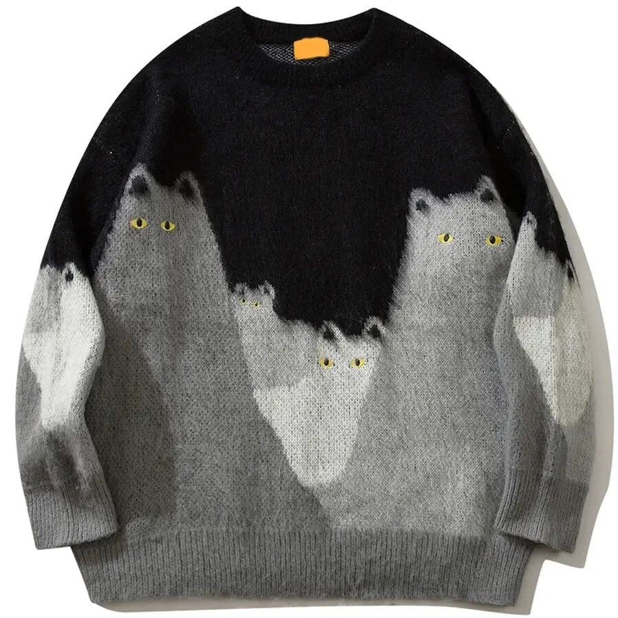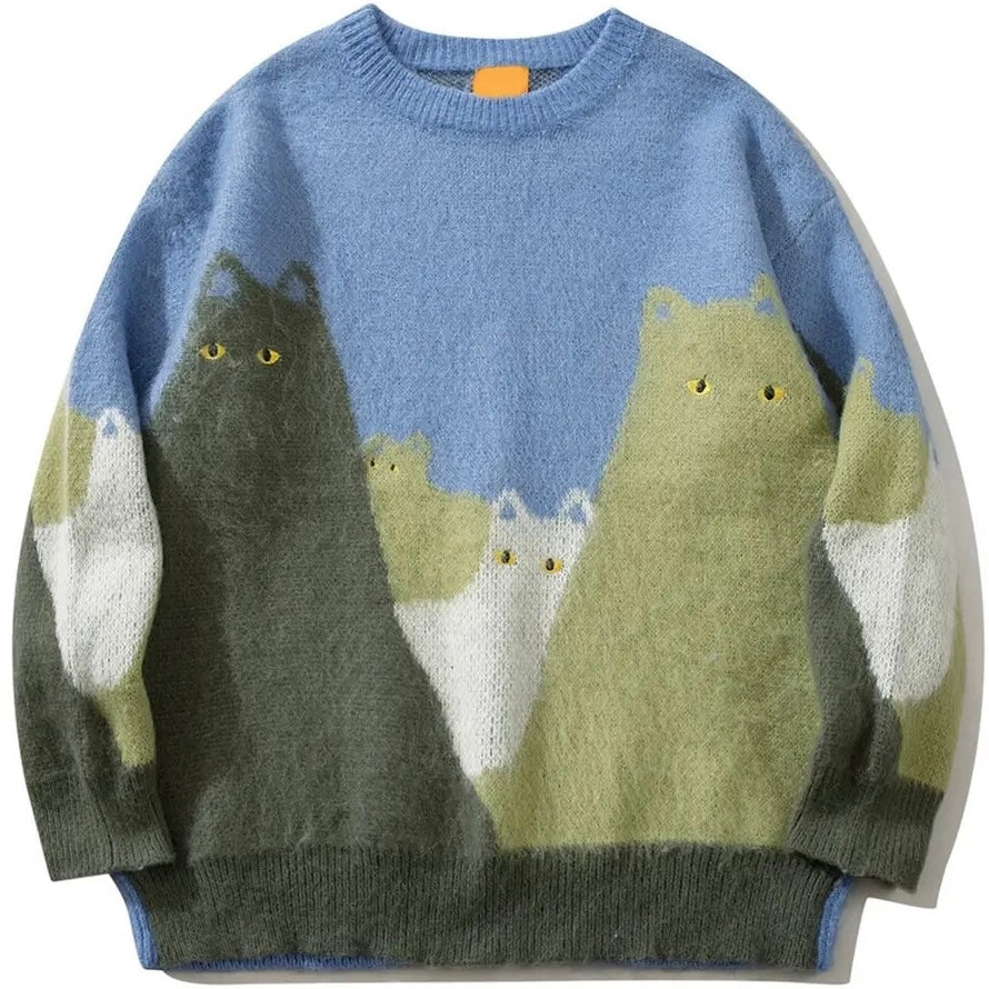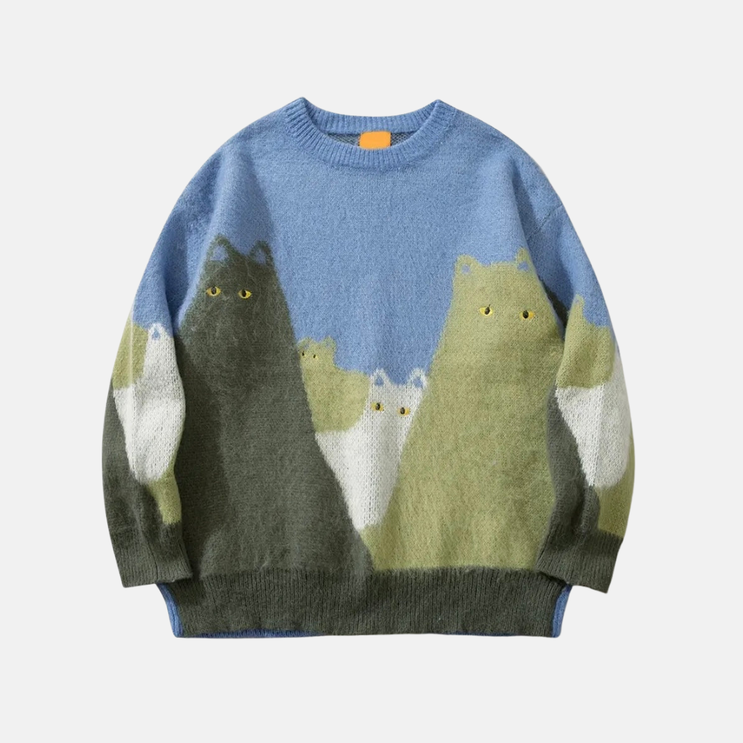 Merged Cats Kazak'ımızla kedi çekiciliğini kucaklayın. Birleştirilmiş kedilerden oluşan sevimli bir tasarıma sahip bu sweatshirt, sokak giyimi takımınıza eğlenceli bir dokunuş katıyor. Hem kedi severler hem de moda tutkunları için mükemmel olan bu ilginç ve benzersiz parçayla tarzınızı yükseltin.