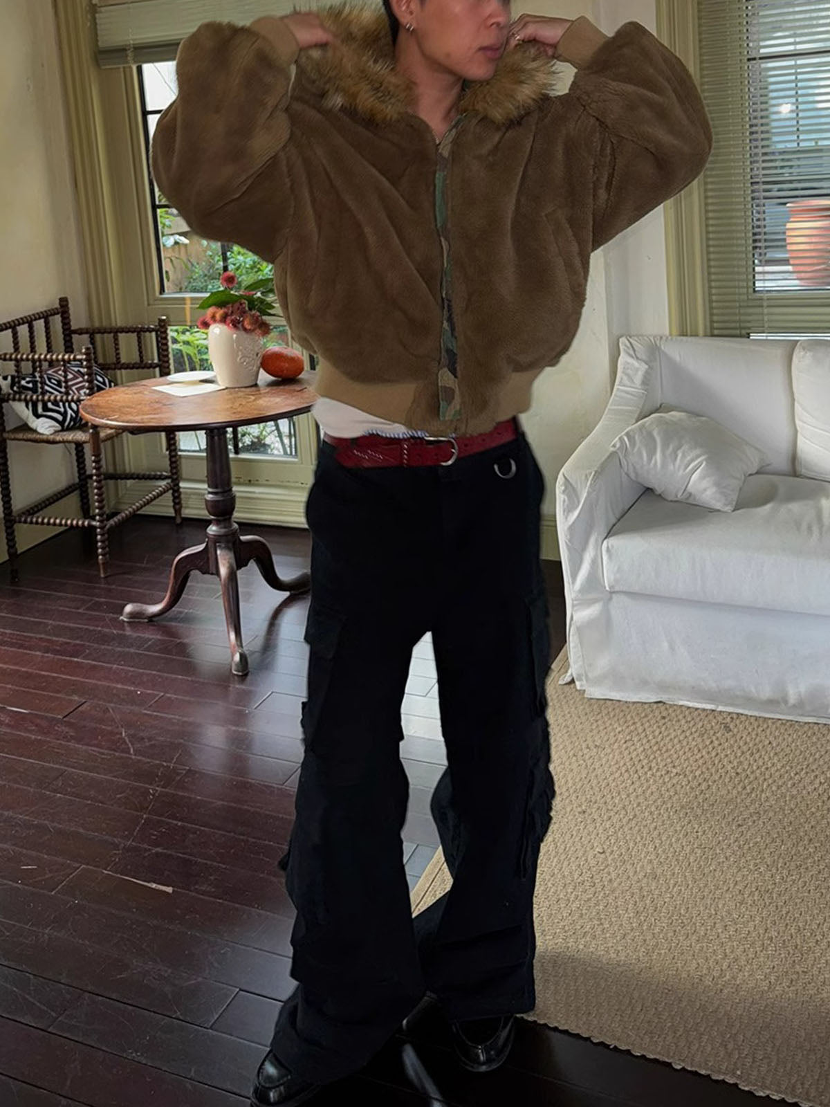 Kürk kapüşon detayı, soğuk günlerde ekstra sıcaklık ve konfor sunar.