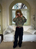 Kamuflaj deseni, kombinlerine trend ve güçlü bir duruş kazandırır.