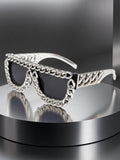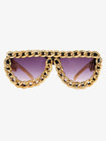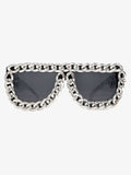 Cesur kare çerçevesi ve zincir detaylarıyla bu güneş gözlüğü, klasik tasarıma modern bir yorum katıyor. Sokak stilinden festivallere kadar her kombine güçlü ve iddialı bir hava kazandırır.