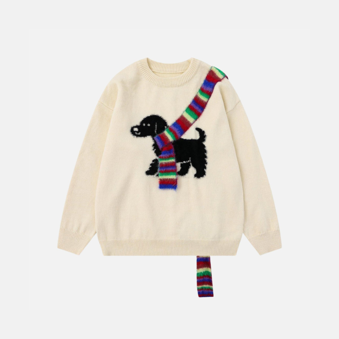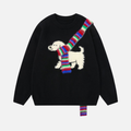 UrbanLaws Köpek Nakışlı Renk Bloklu Kazak