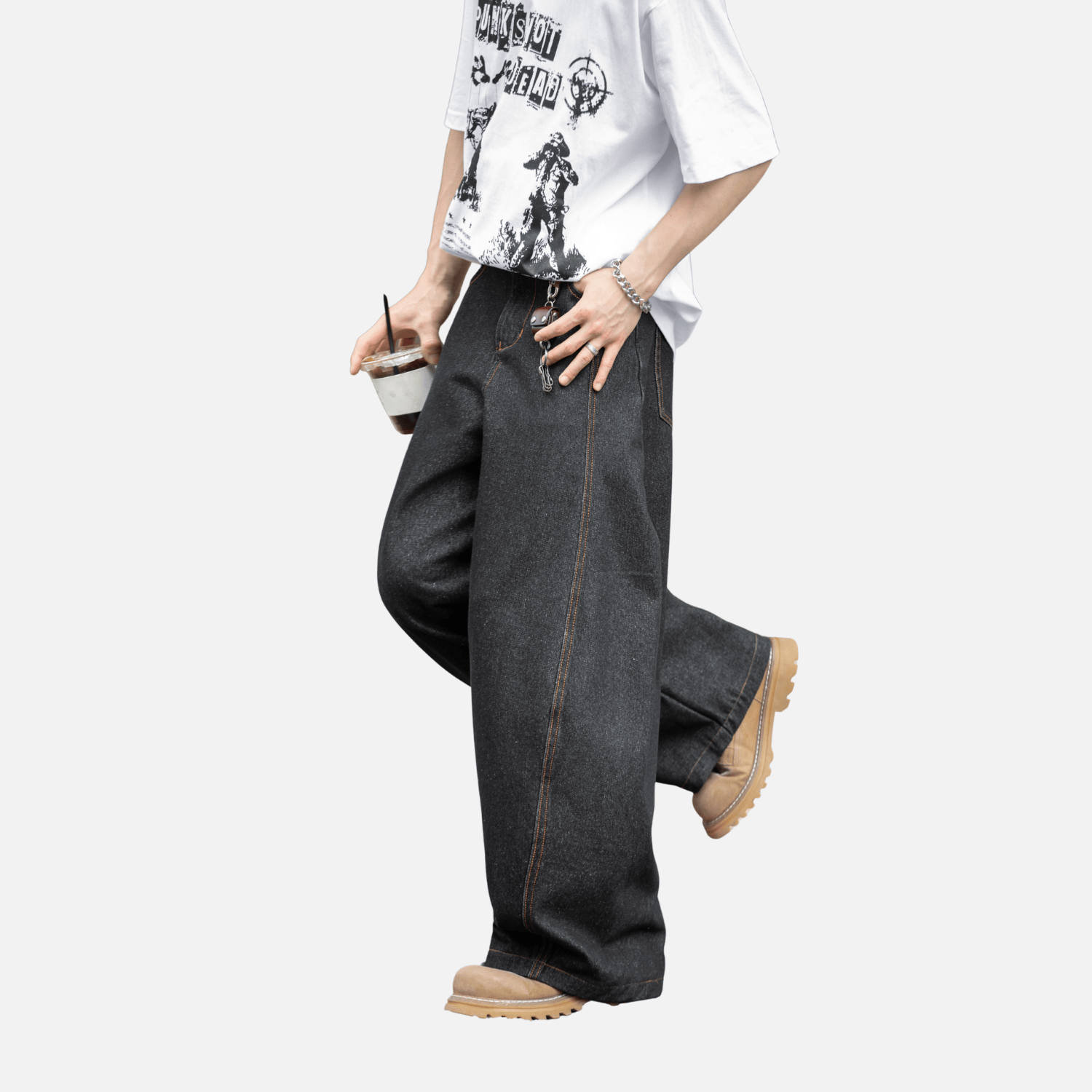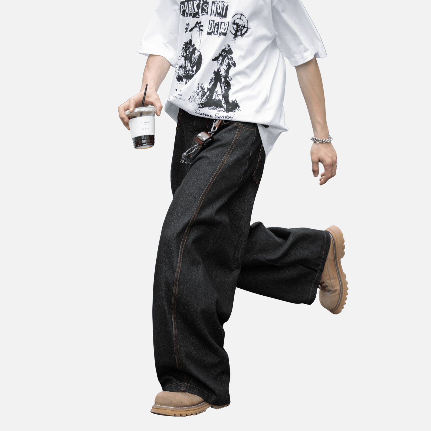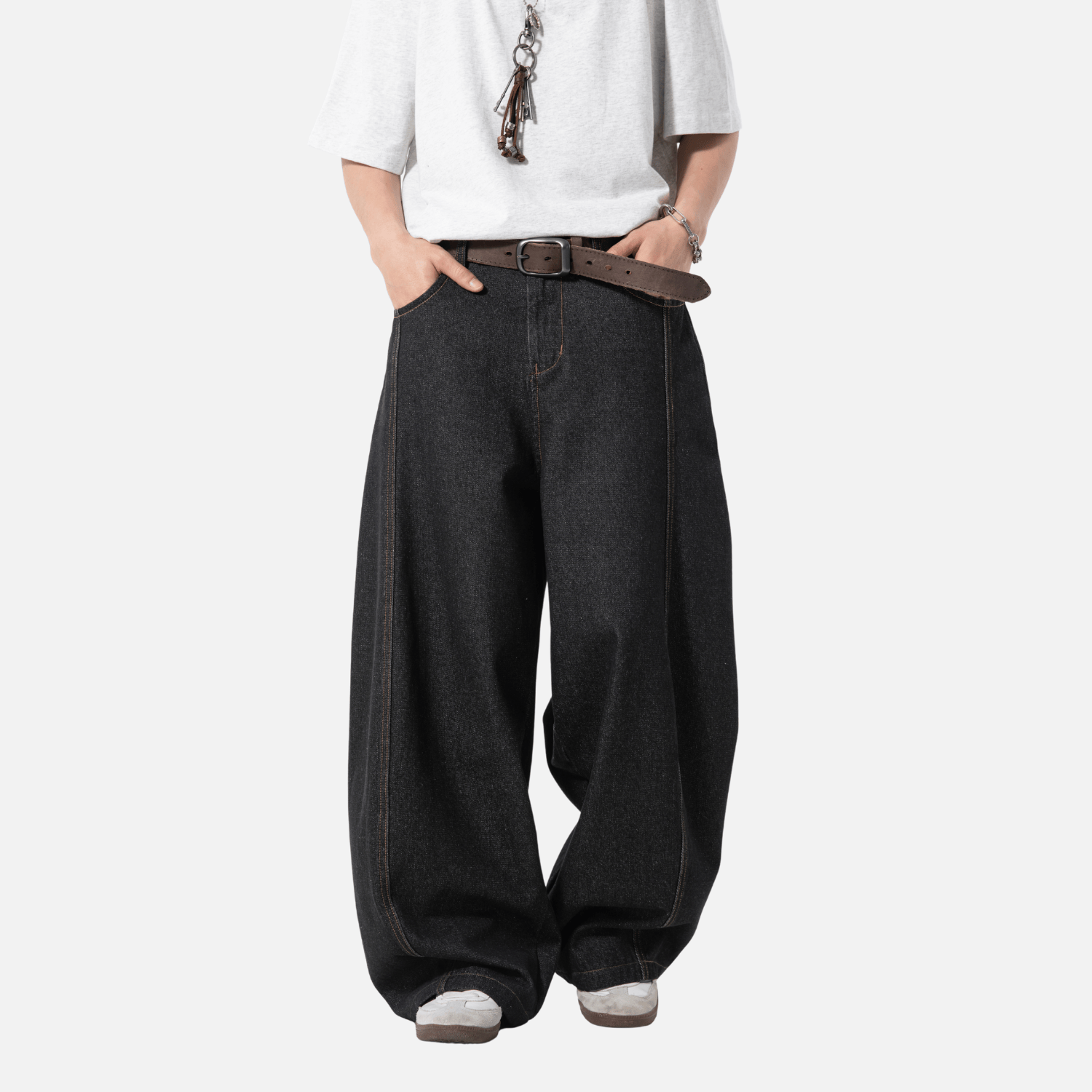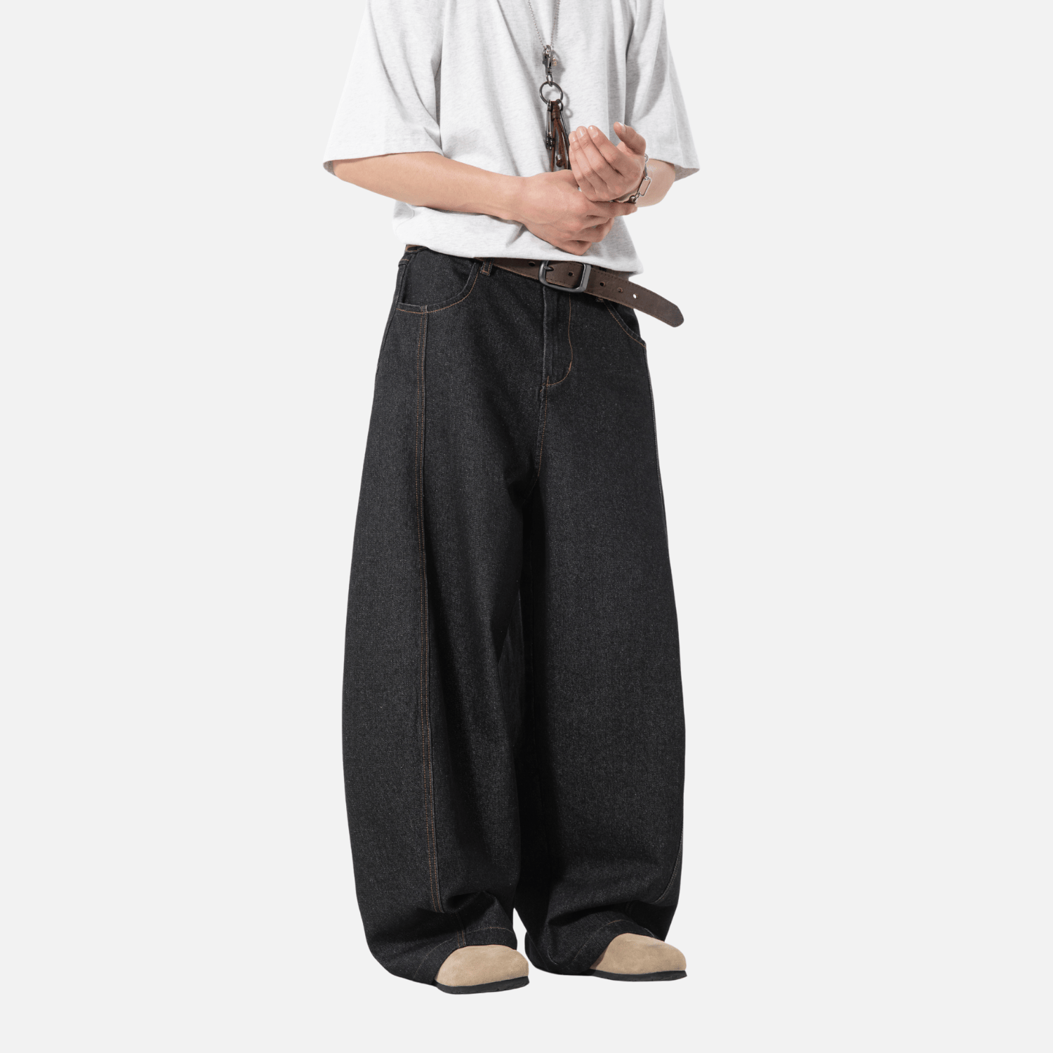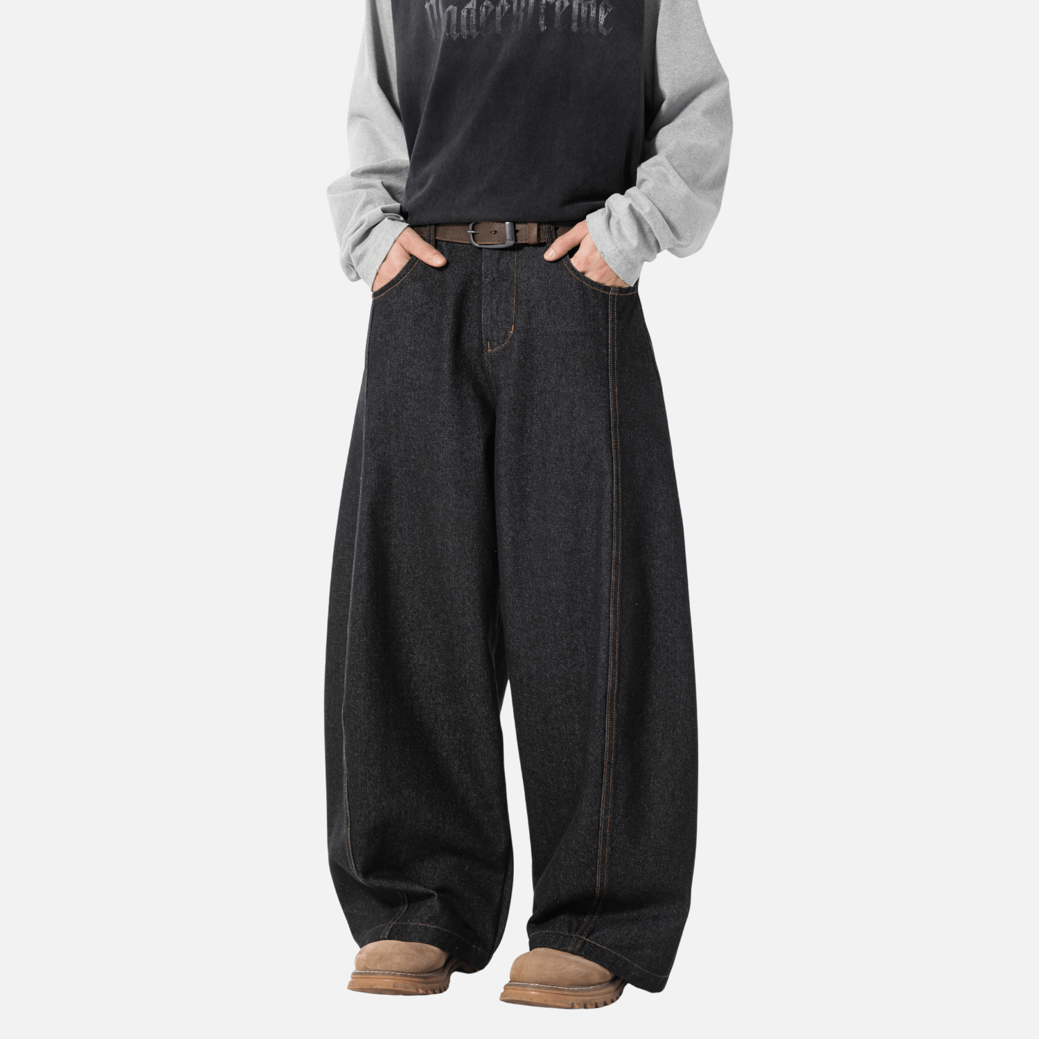 UrbanLaws Topstitch Slant Baggy Denim Pantolon