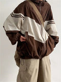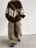 Özellikler: Hafif ve cilt dostu polyester kumaş, patchwork (renk bloklu) tasarım, oversize loose fit kalıp, kapüşonlu stil