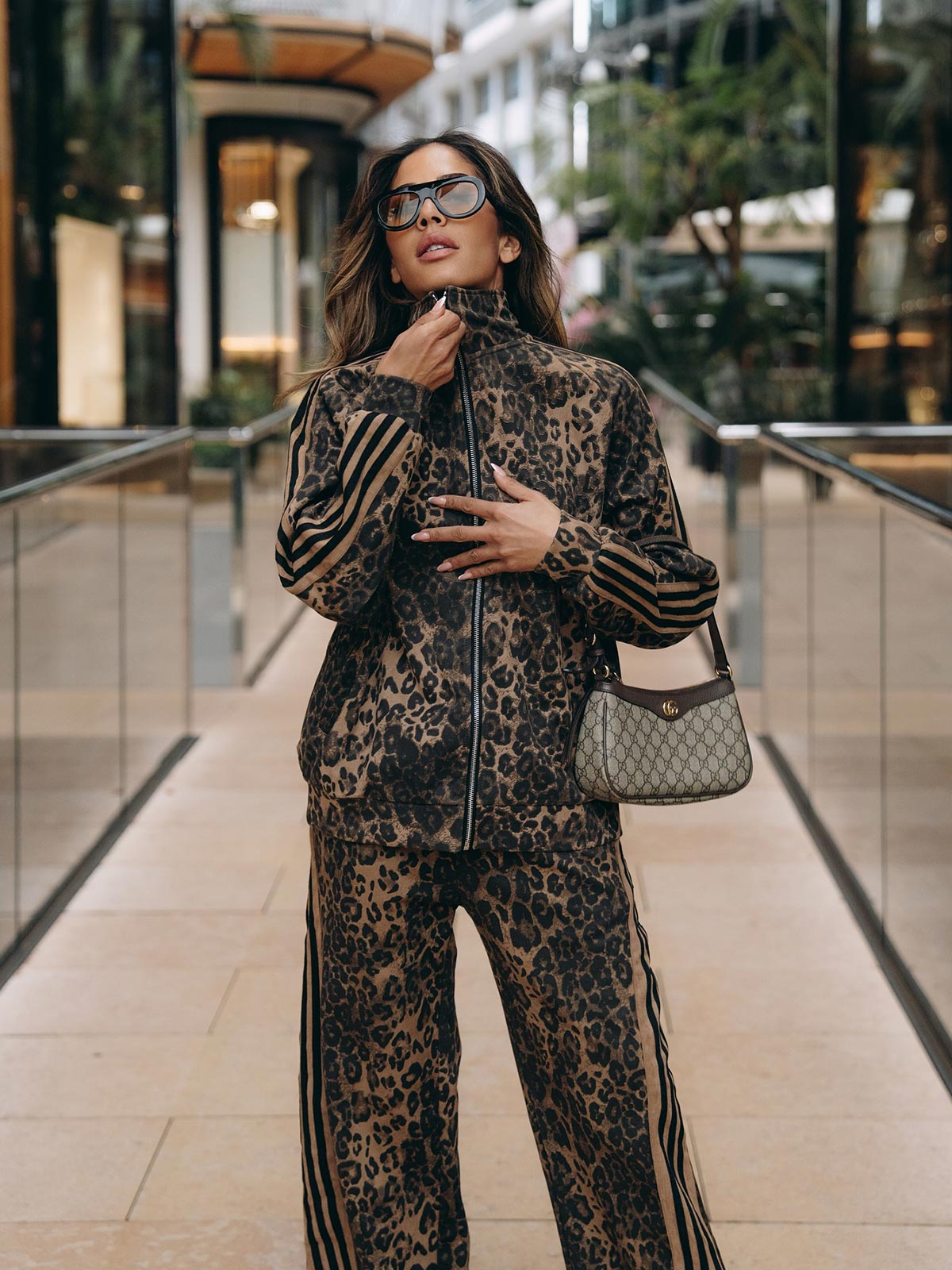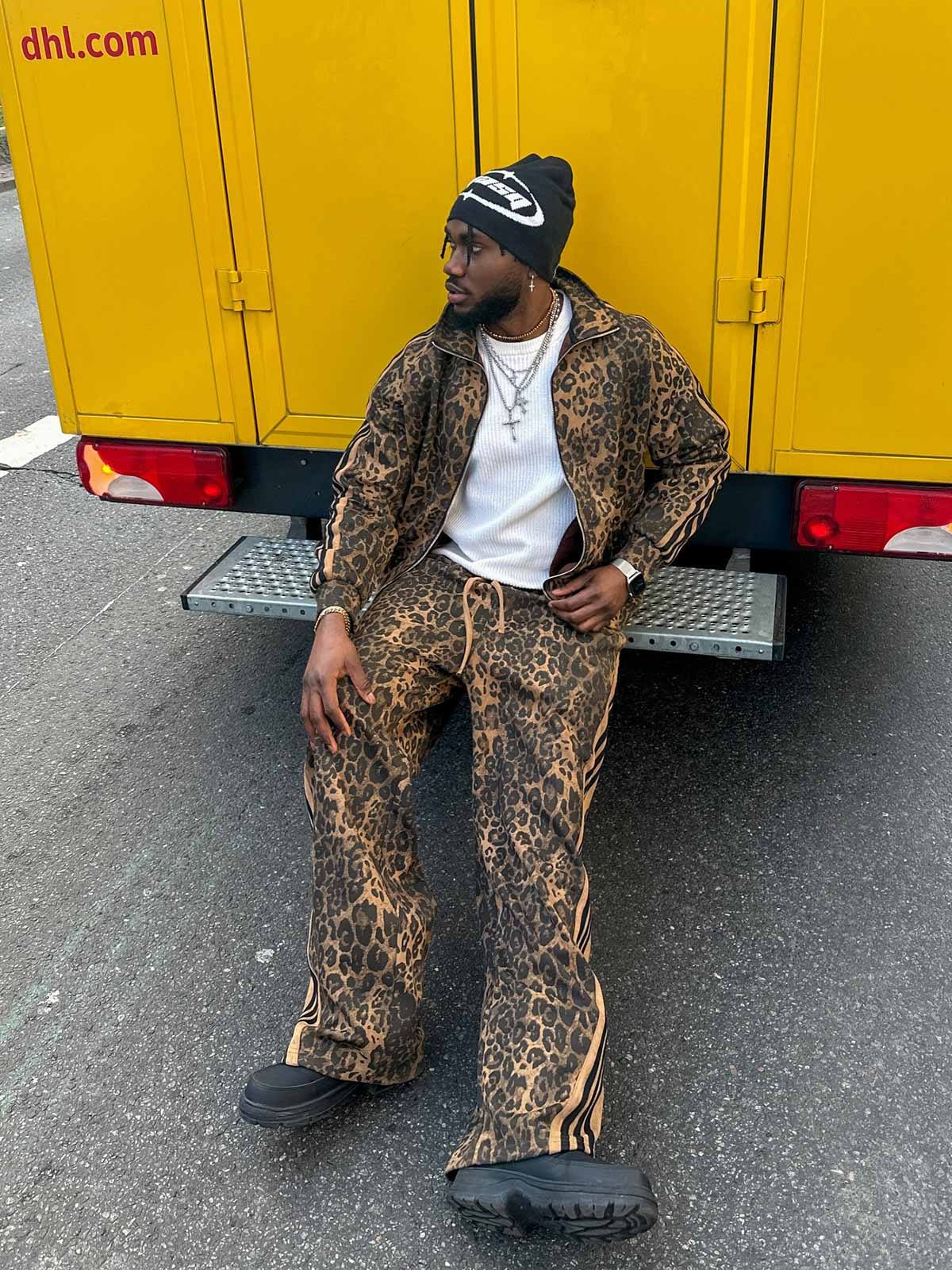Özel Tasarım Leopar Desenli Süet Tracksuit