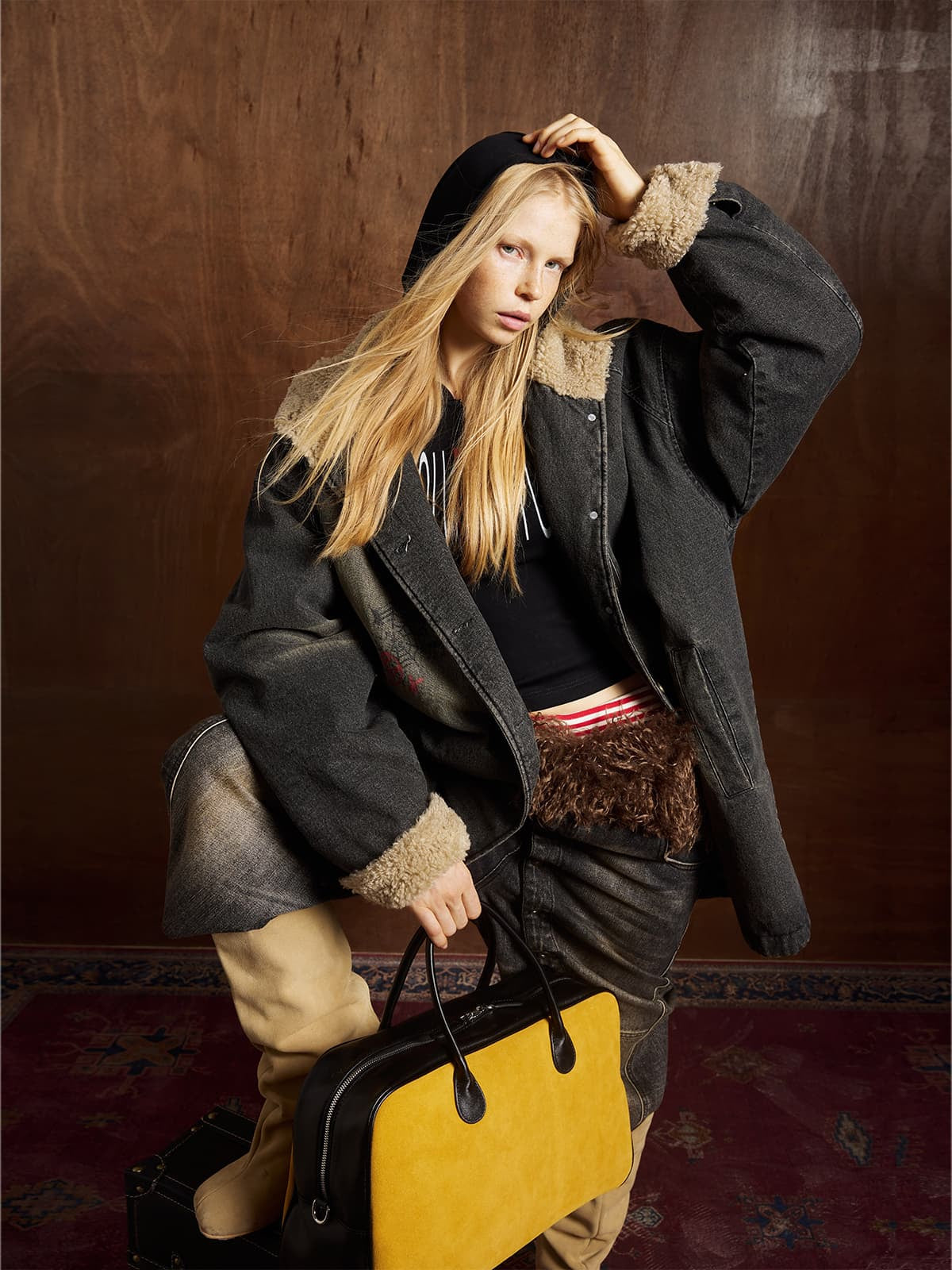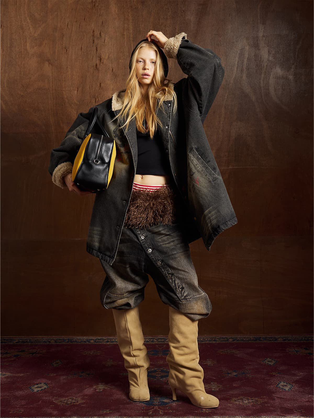 Graffiti Denim Ceket | Uzun Kesim & Kuzu Fleece