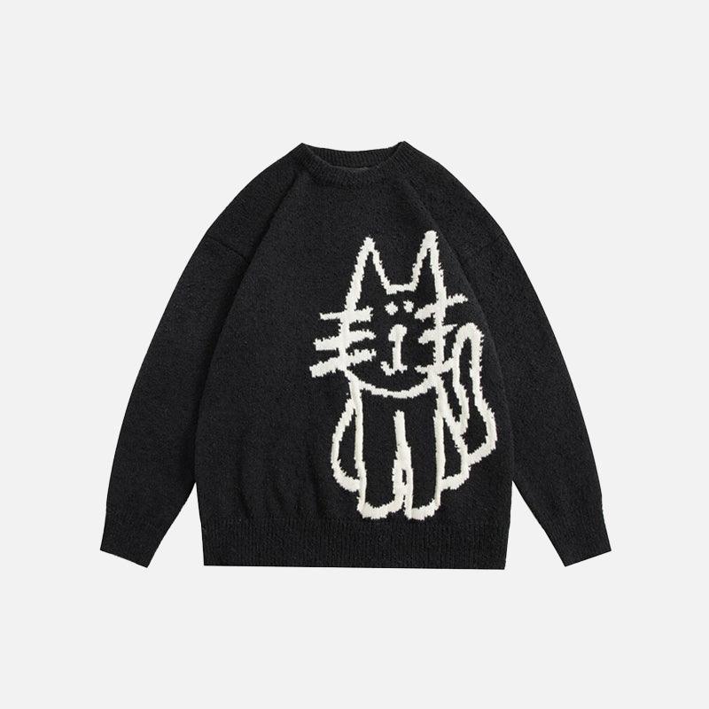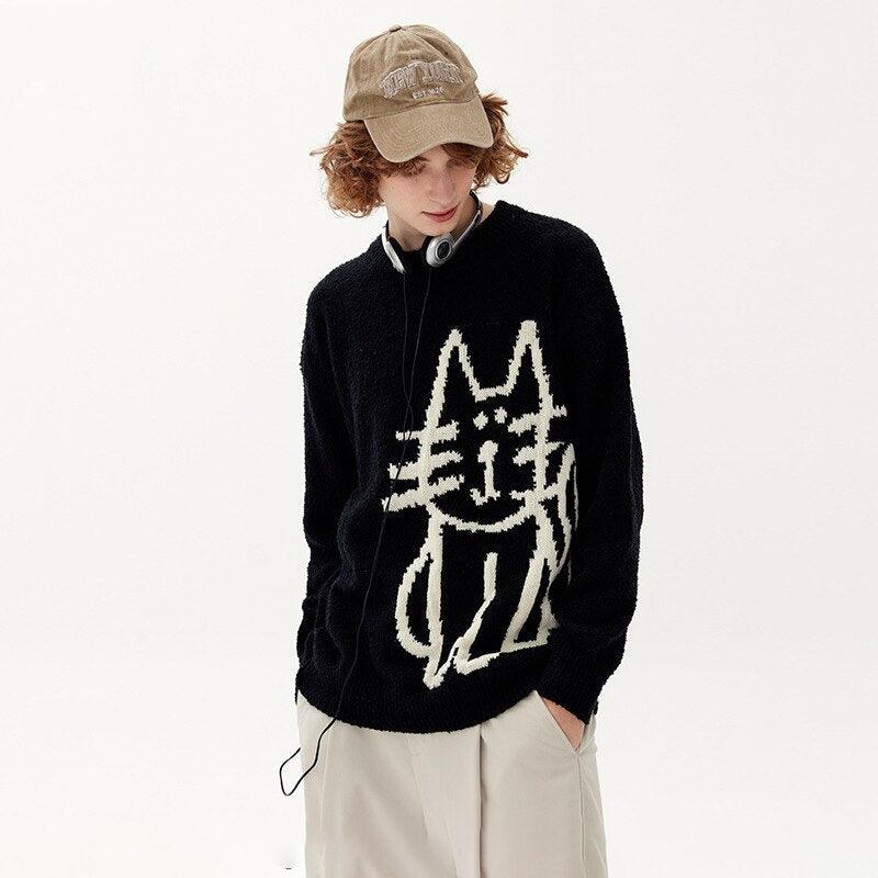 Elle Çizilmiş Kedi Örme Kazakımızla kedi cazibesini kucaklayın. Sevimli kedi çizimlerinin yer aldığı bu kazak, sokak giyim tarzınıza eğlenceli bir dokunuş katıyor. Hem kedi severler hem de moda tutkunları için mükemmel olan bu rahat ve ilginç parçayla tarzınızı yükseltin.