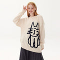 Elle Çizilmiş Kedi Örme Kazak