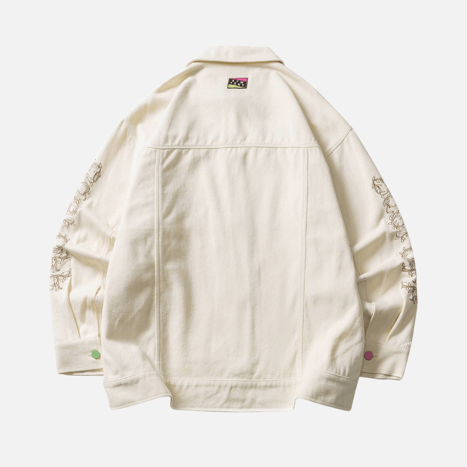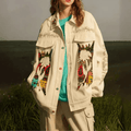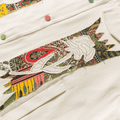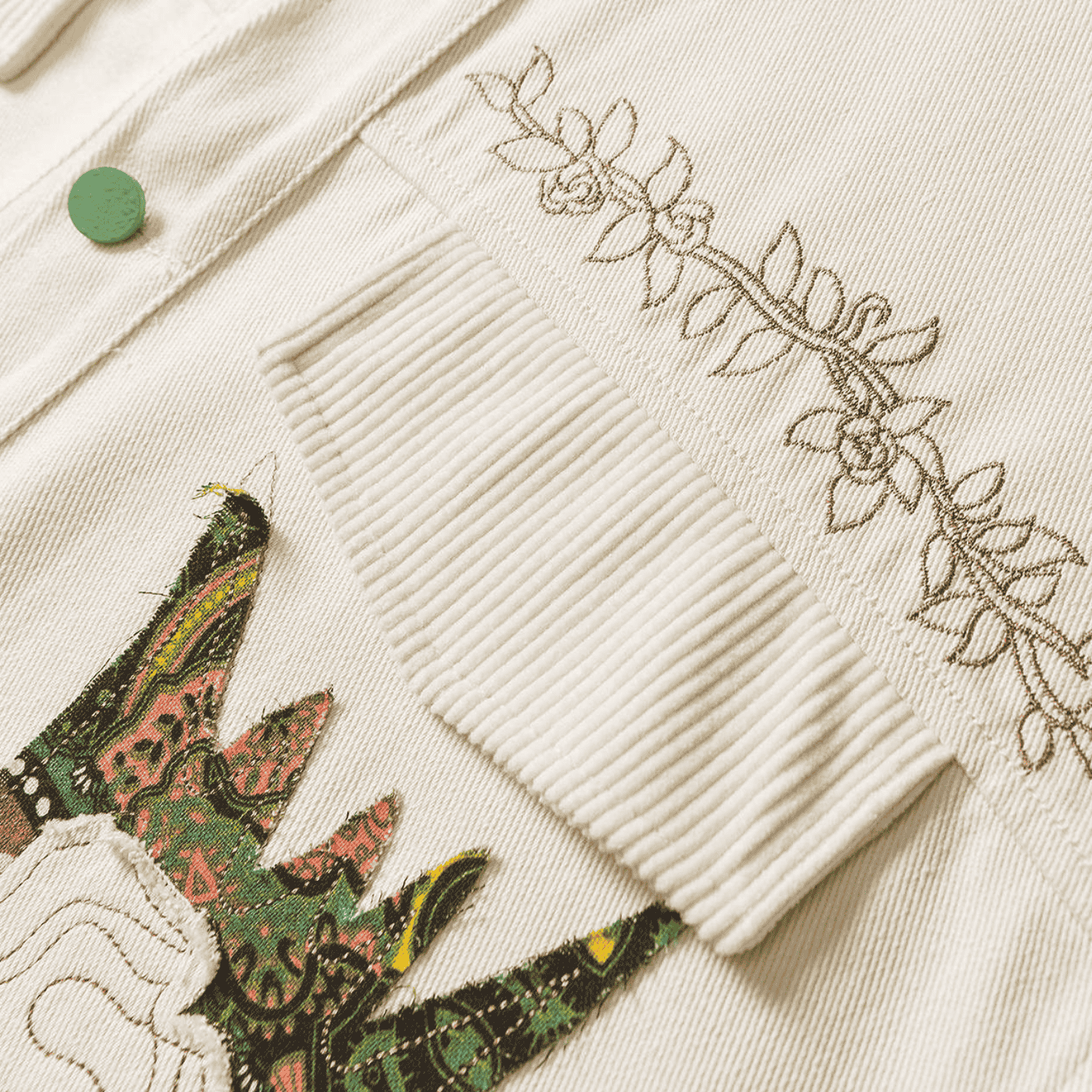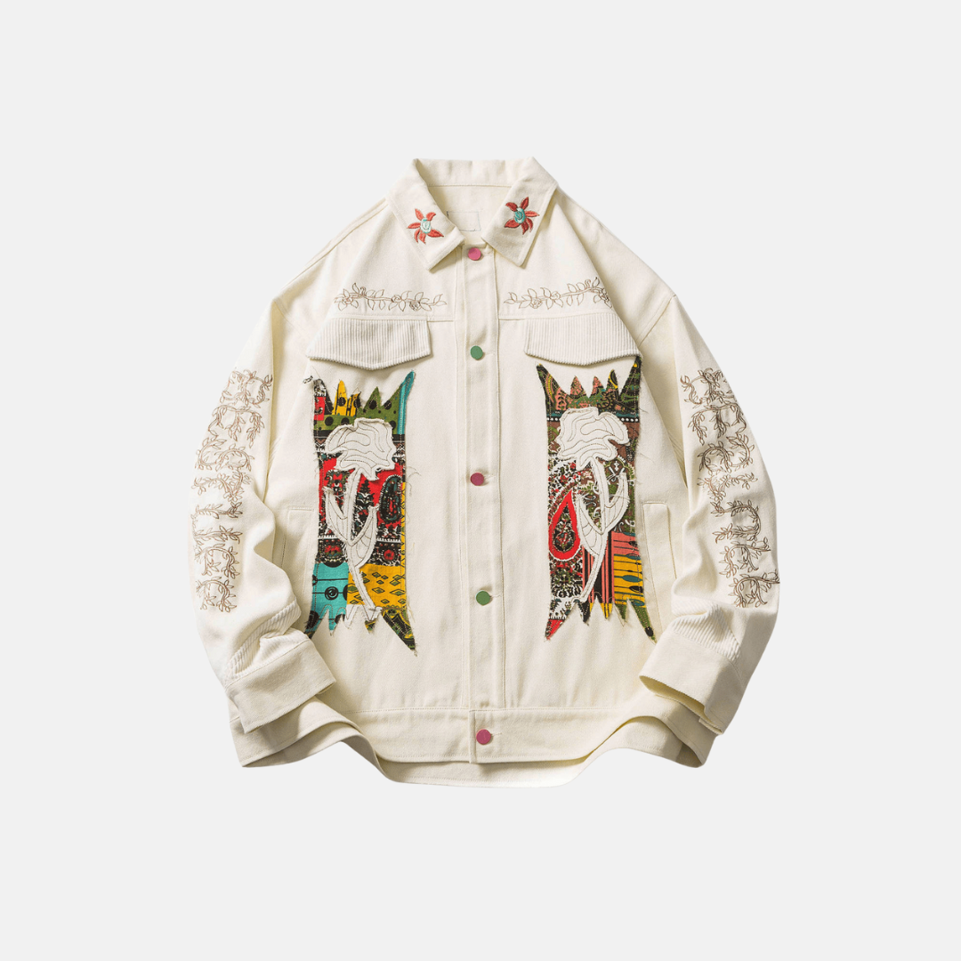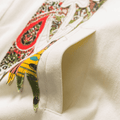 Özellikler: Etnik esintili çiçek nakışı, modern patchwork tasarım, %100 pamuk kumaş, unisex rahat kesim, renkli düğme detayları