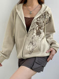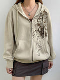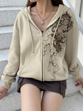 UrbanLaws Fairy Grunge Çiçek Desenli Fermuarlı Hoodie