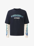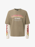Özel Tasarım Degrade Yazı Baskılı İkili Katmanlı Uzun Kollu Tişört