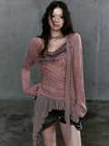 Grunge Tarzı Bağcıklı Fırfırlı Bluz