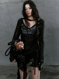 Romantik ve asi detayların birleşimiyle tasarlanan Grunge Tarzı Bağcıklı Fırfırlı Bluz, hem feminen hem de grunge stiline uyum sağlar. Özgün tasarımıyla günlük kombinlerinize sofistike bir hava katın.