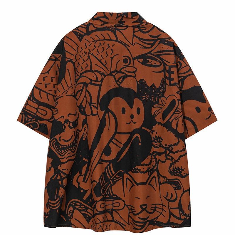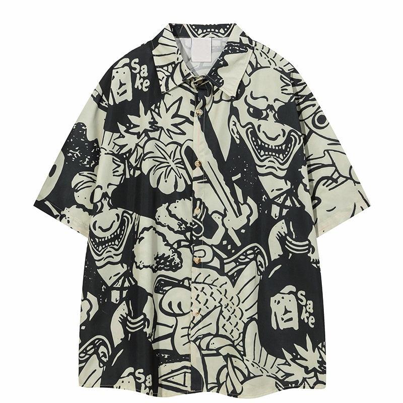 Sake Plaj Gömleğimizle Harajuku modasının ruhunu yakalayın. Canlı renklere ve plajdan ilham alan motiflere sahip bu gömlek, sokak giyiminize biraz eğlence katmak için mükemmeldir. Kesinlikle dikkatleri üzerine çekecek bu eğlenceli ve göz alıcı parçayla tarzınızı yükseltin.