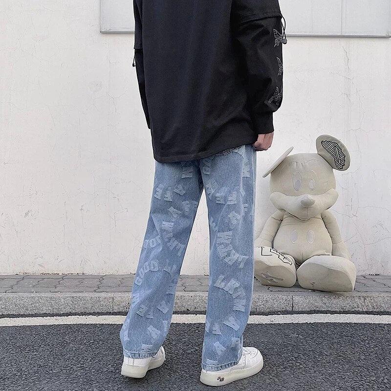 Harf Desenli Açık Yıkama Kot pantolonlarımızla kendinizi ifade edin. Şık harf deseni ve açık renk yıkama yüzeyiyle bu kot pantolon, sokak giyimi takımınıza şehirli bir hava katıyor. Benzersiz tarzınızı sergilemek için mükemmel olan bu modaya uygun ve çok yönlü parçayla görünümünüzü yükseltin.