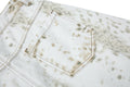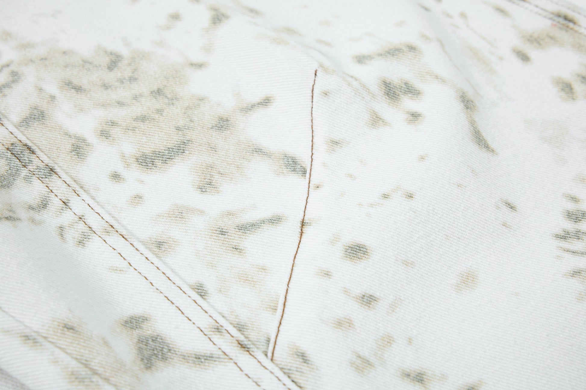 Özellikler: Yüksek bel, kavisli (curved) paça kesimi, beyaz kamuflaj deseni, dayanıklı denim kumaş.