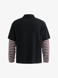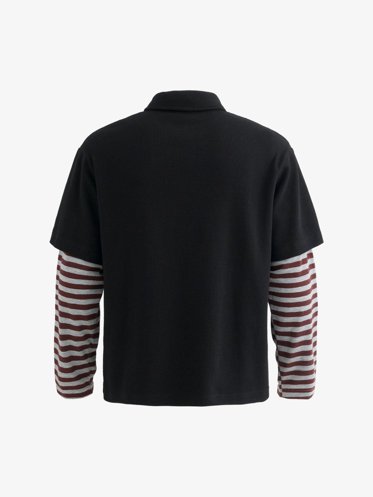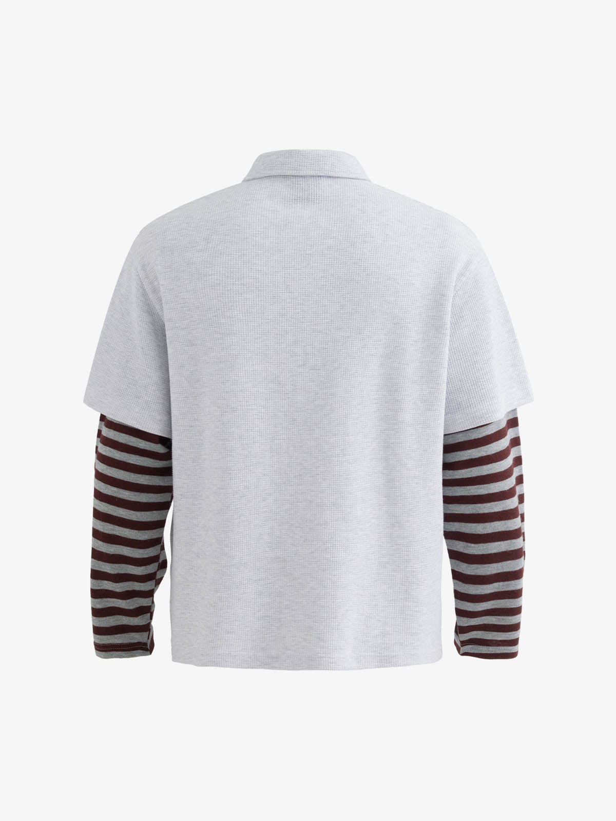 UrbanLaws İkili Jersey Sweatshirt – Waffle Desen & Çizgili Revers Yaka