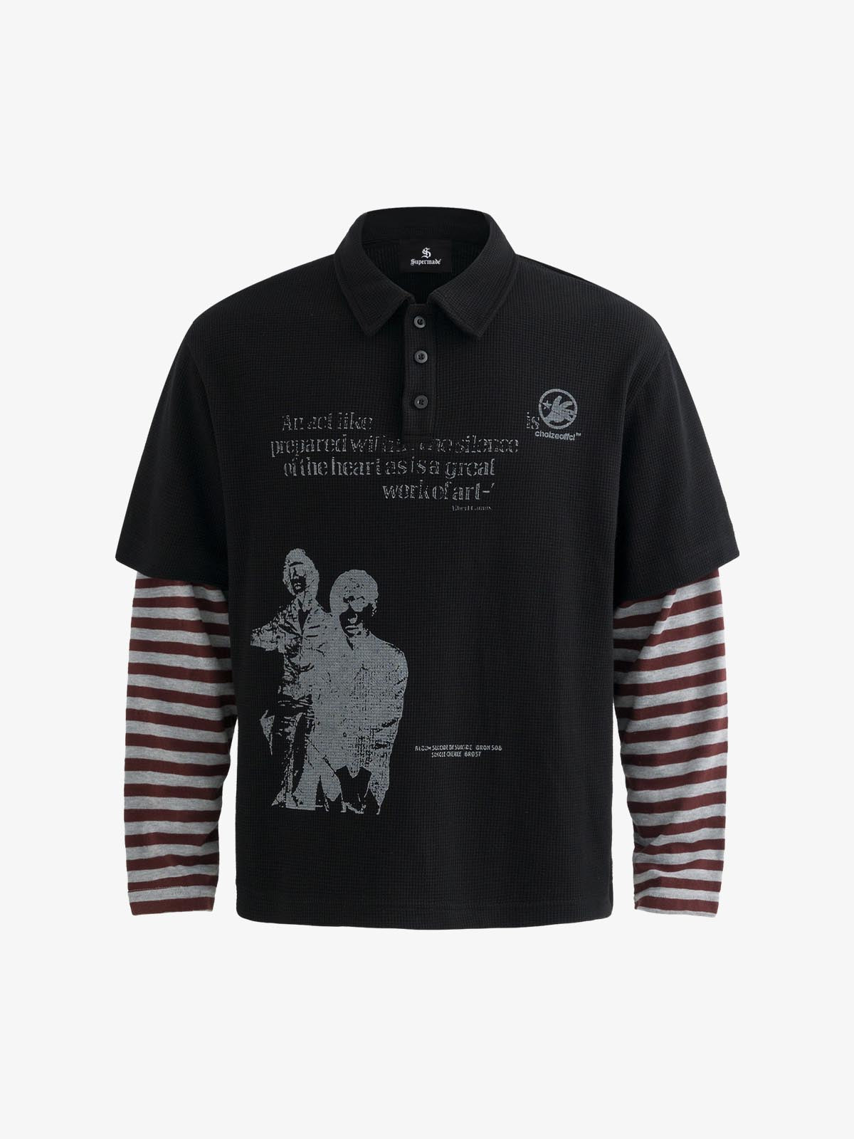 Özellikler: Ön kısımda özgün grafik baskı, çizgili kollar, klasik polo yaka, ikili jersey stil