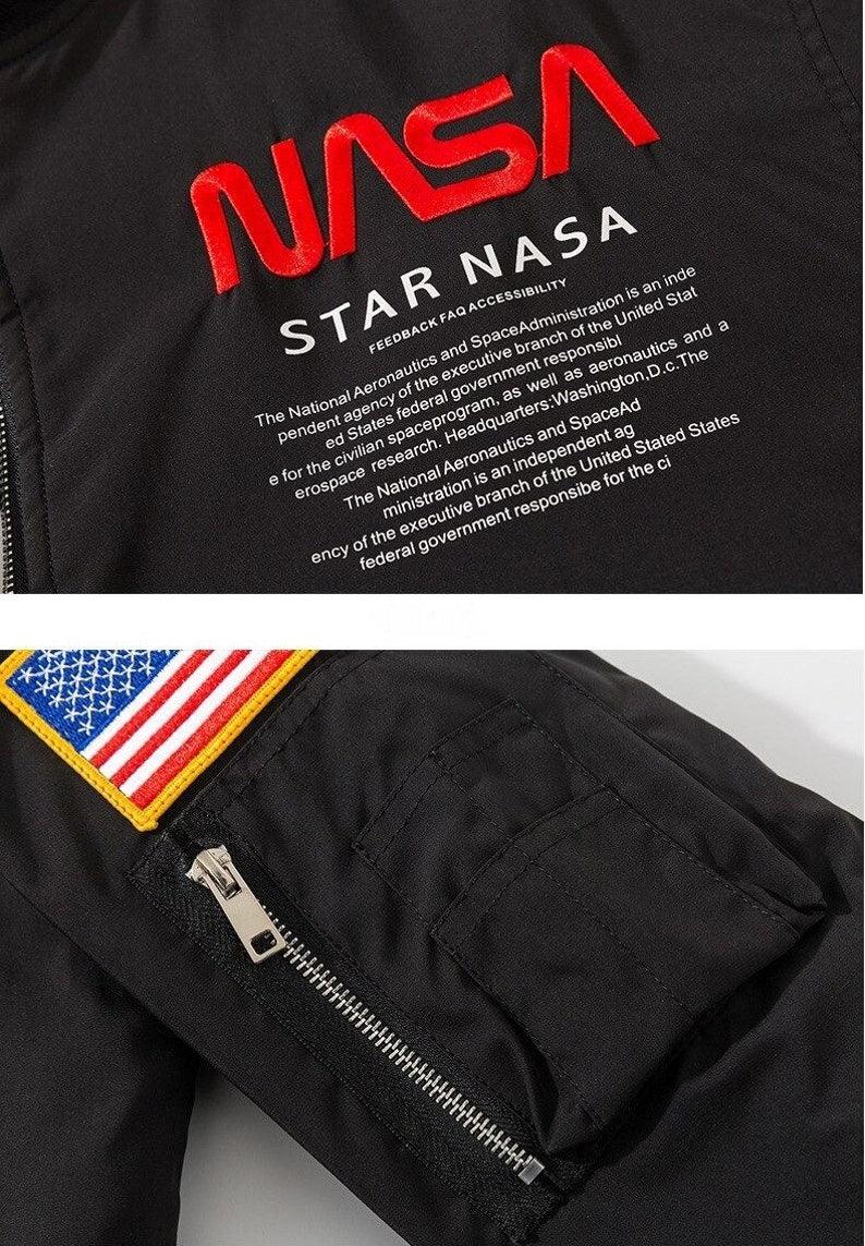 İşlemeli NASA Ceketimizle yıldızlara ulaşın. İkonik NASA işlemesine sahip bu ceket, sokak giyiminin havalılığını uzay keşfi havasıyla birleştiriyor. Hem kentsel maceracılar hem de uzay tutkunları için mükemmeldir.