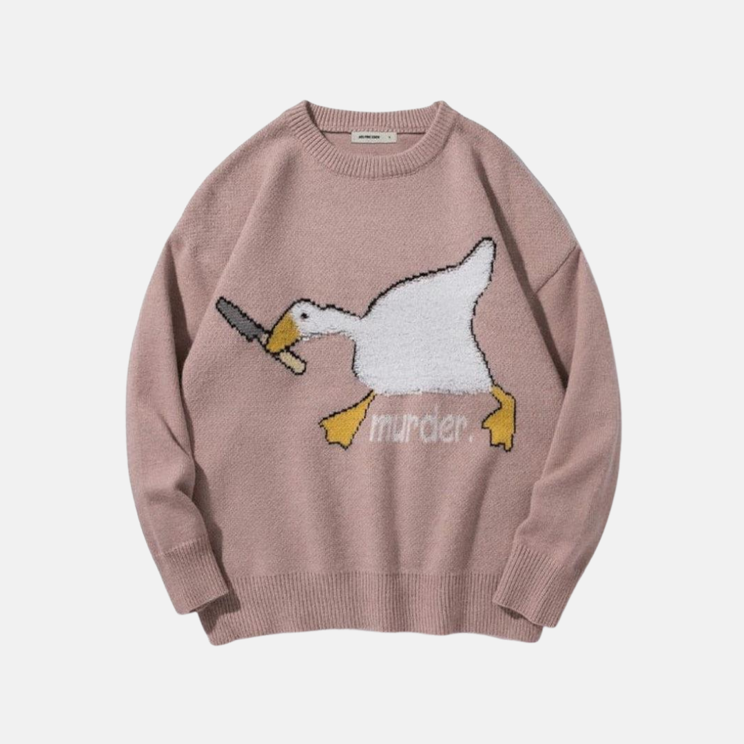 Örme Cinayet Ördeği Kazakımızla tarzınızı geliştirin. İlginç bir ördek motifine sahip bu rahat örgü, sokak giyimi görünümünüze eğlenceli bir dokunuş katıyor. Sürüden öne çıkmak isteyen herkes için mükemmel olan bu benzersiz ve göz alıcı parçayla tarzınızı yükseltin.