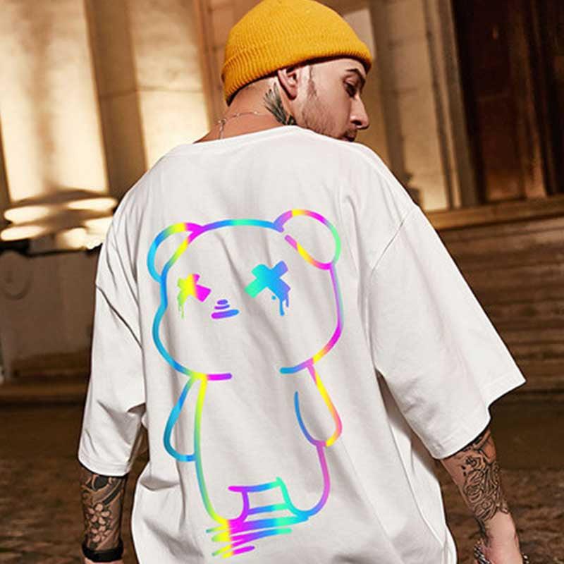 Yansıtıcı Teddy Bear Gökkuşağı Üniseks Tişörtümüzle ışıl ışıl parlayın. Yansıtıcı renklerde eğlenceli bir oyuncak ayı tasarımına sahip bu tişört, sokak giyimi takımınıza ilginç bir dokunuş katıyor. Gündüz veya gece benzersiz kişiliğinizi ifade etmek için mükemmel olan bu modaya uygun ve göz alıcı parçayla tarzınızı yükseltin.