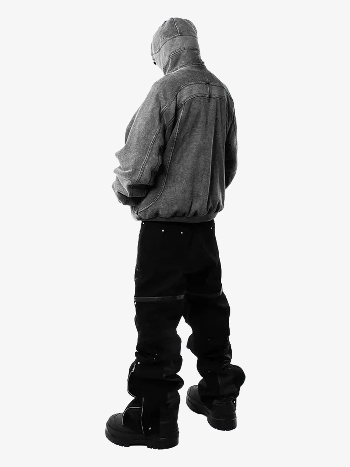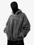 Fermuarlı Fleeceli Retro Eye-Hood Kapüşonlu Sweatshirt