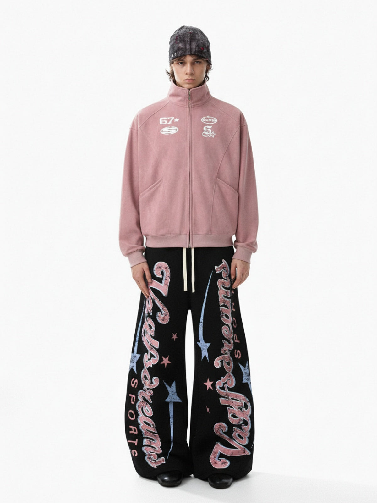 Retro Grafik Fleece Barrel Eşofman | Geniş Paça