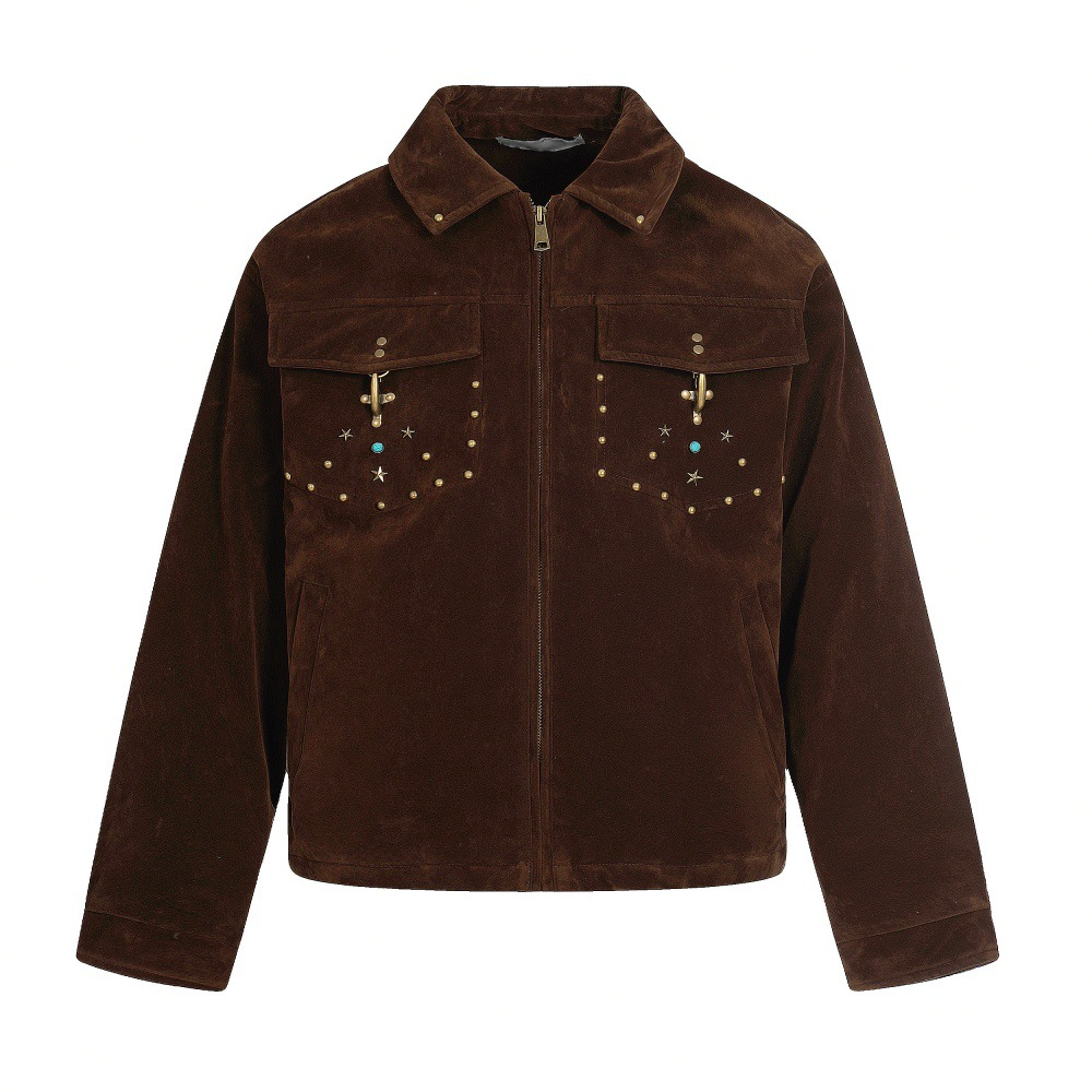 Retro Çivili Süet Mont | Zımba Detaylı