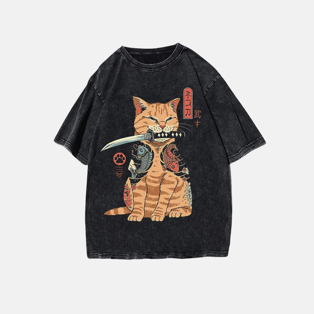 Bu Samurai Kedi Tişörtü, kaliteli sağlam pamuktan üretilmiş olup, rahat bir nefes alabilirlik sağlar ve rahat bir sokak stili için idealdir. Dikkat çekici bir Samurai Kedi baskısıyla, bu sofistike ve özel tişört, her gardıroba benzersiz bir ifade katıyor.