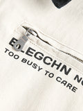 Göğüs cebindeki cesur yazı, trend bir duruş kazandırır.