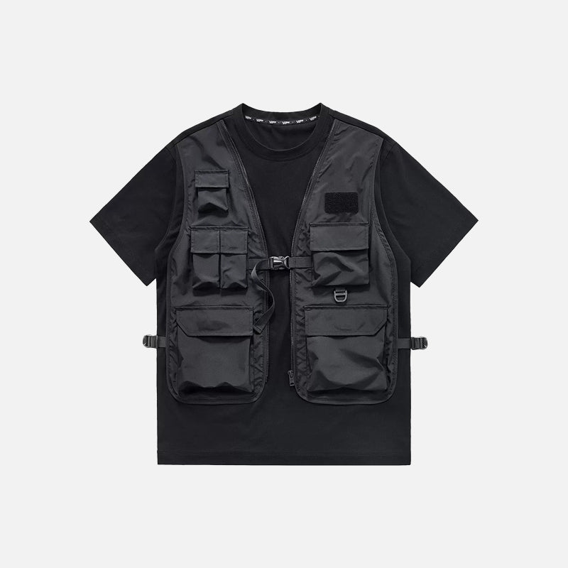 Modern ve Fonksiyonel! Techwear İki Parça Yelek Tişörtleri ile tarzınıza modern ve fonksiyonel bir dokunuş katın. Şık tasarımı ve pratik yelek detayı ile her ortamda dikkat çekici ve kullanışlı olun.