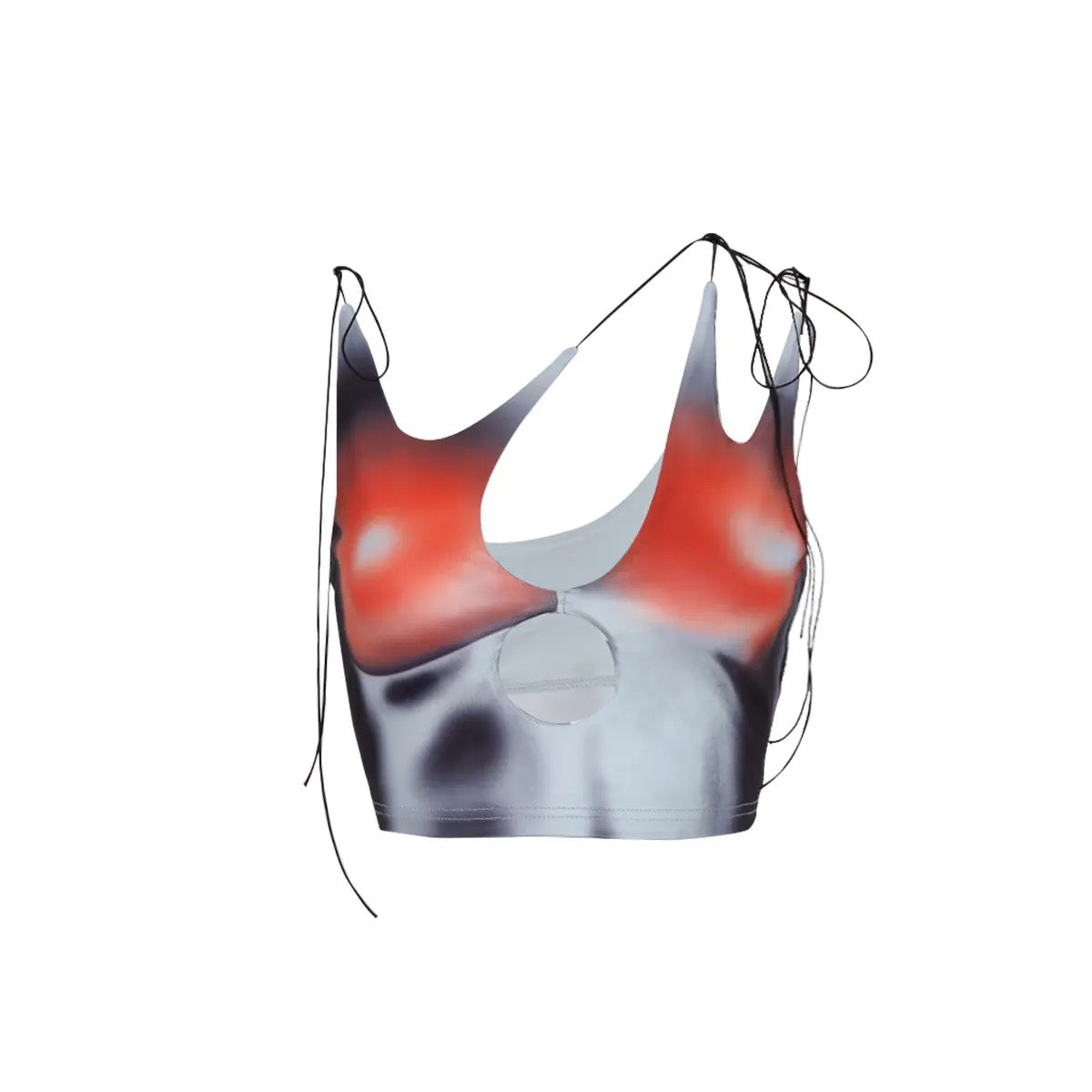 Thermal Print Lace Up Kadın Top