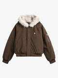 Retro Kürklü Kapüşonlu Fleece Bomber Ceket