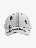 Eskitme yırtık detayları ve nakışlı yazı tasarımıyla bu baseball şapka, sokak stiline iddialı bir karakter kazandırıyor. Ayarlanabilir kayışı sayesinde her baş ölçüsüne kusursuz uyum sağlar.