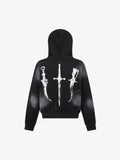 Karanlık dokunuşlarla modern sokak kodlarını bir araya getiren bu hoodie, sadece bir parça değil; tarzını ifade eden giyilebilir bir sanat eseri. Sokaklarda farklı durmak isteyenler için üretildi.
